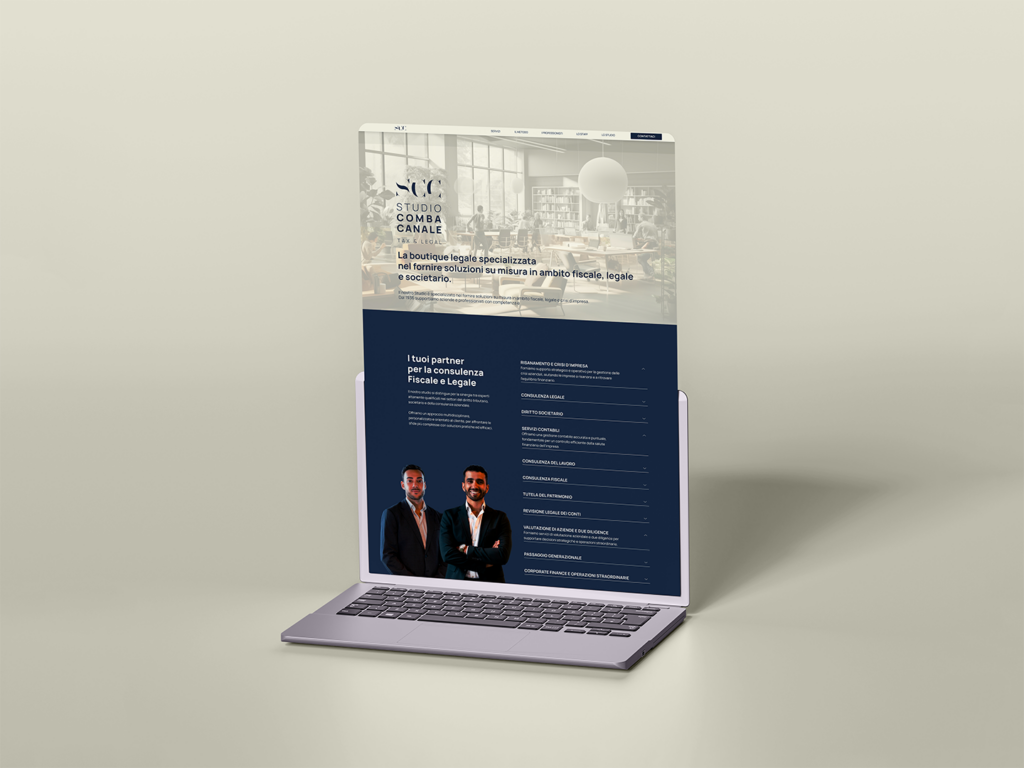 Abbiamo lavorato sulla costruzione di una nuova brand identity e di un sito web moderno e accattivante. Il risultato ottenuto per Studio Comba Canale è un’identità nuova, che comunica affidabilità e professionalità, in linea con la mission aziendale.